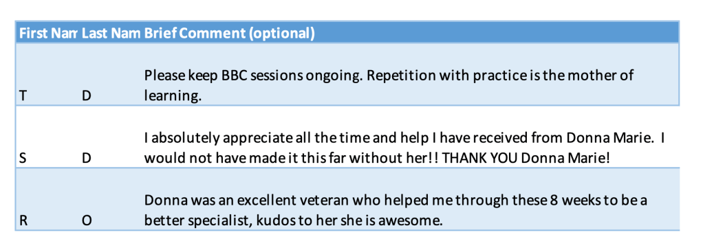 I appreciate every learner’s feedback, whether positive or negative. It helps me keep what is working. It also helps me improve what is not working. My style of teaching is collaborative, so every learner is welcomed to interact with me throughout their learning process. I will also ask each learner for anonymous feedback. This is especially important after several sessions together. It helps me understand how I am doing.